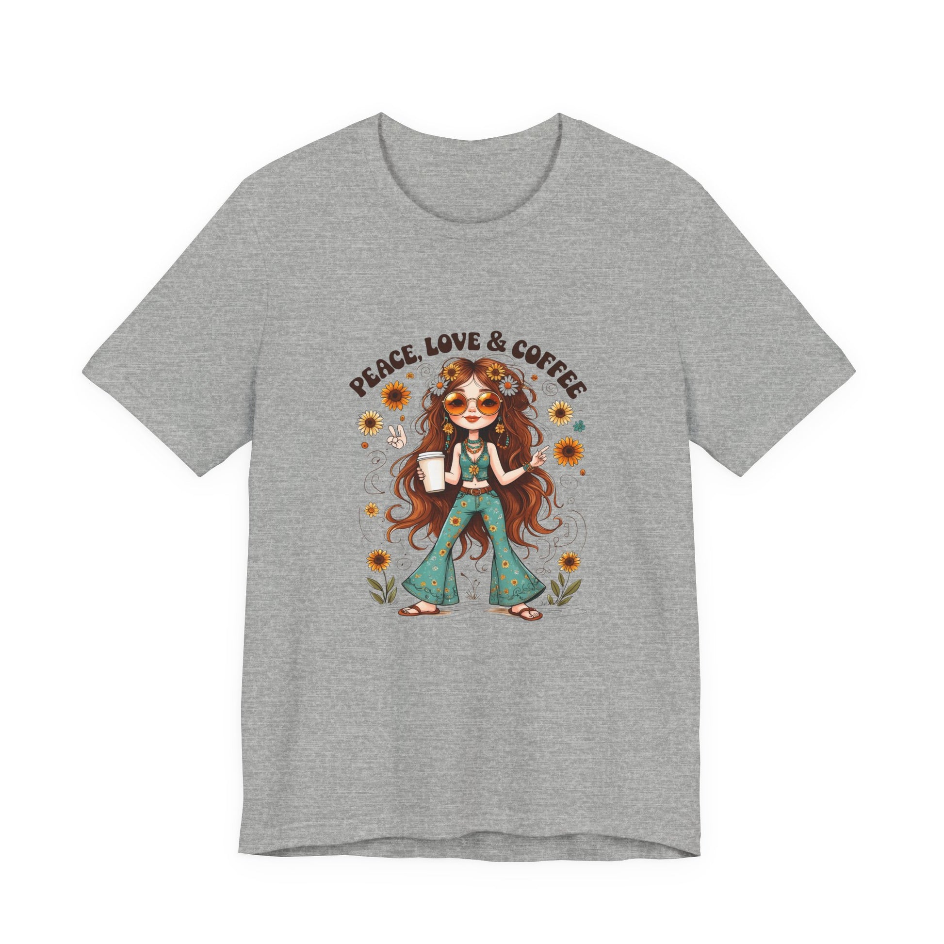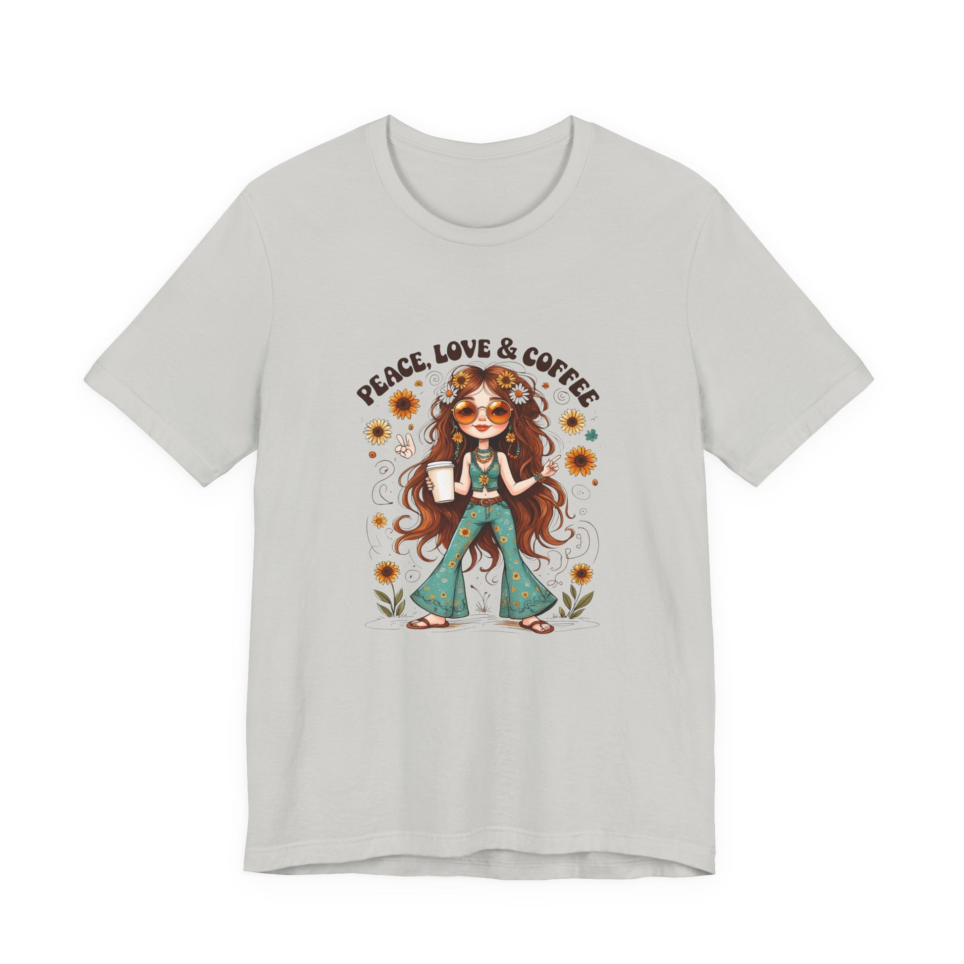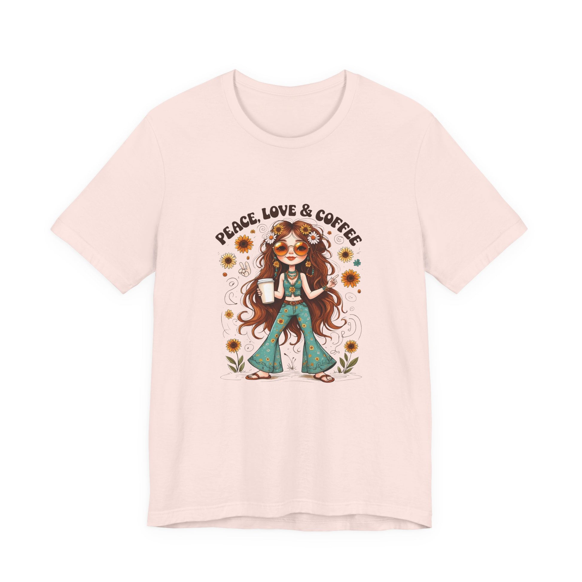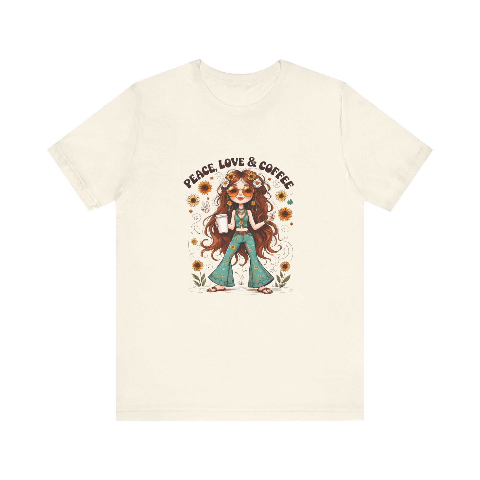 Boho Peace Love Coffee Tee, Relaxed Unisex Tee, Gift for Coffee Lovers, Casual Summer Shirt, Hippie Style Top, Festival Wear