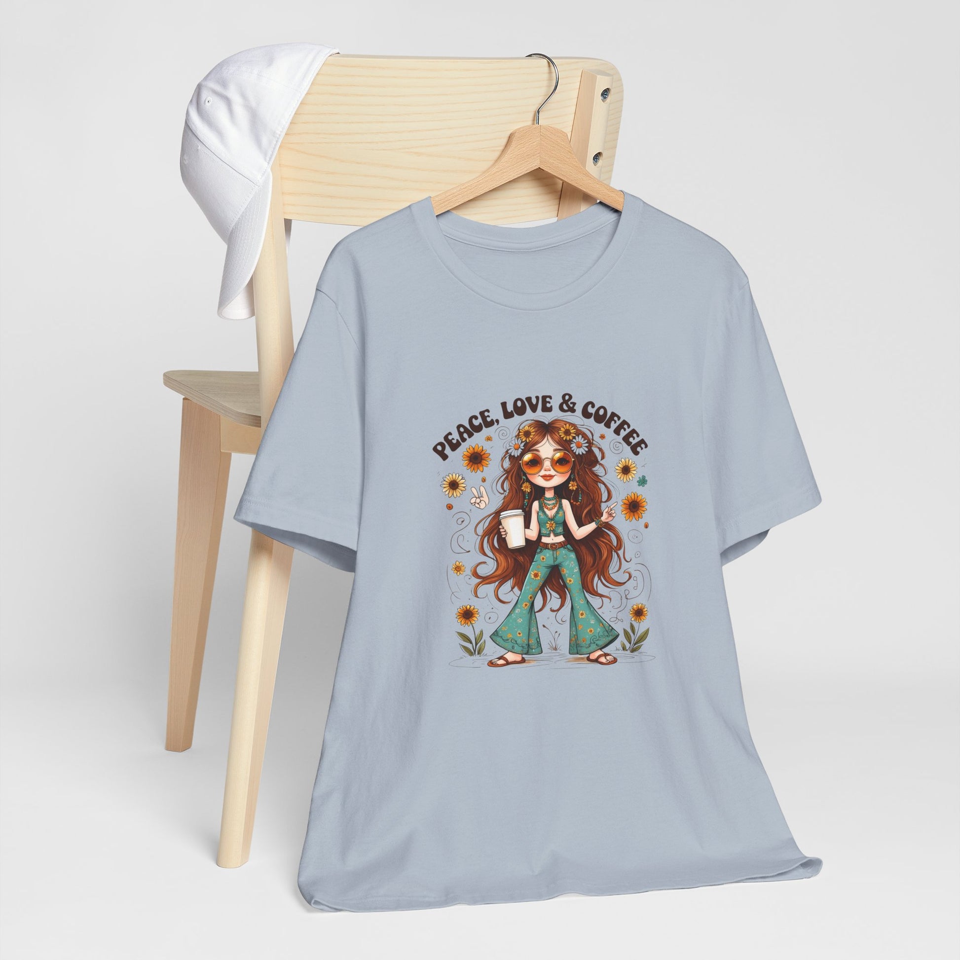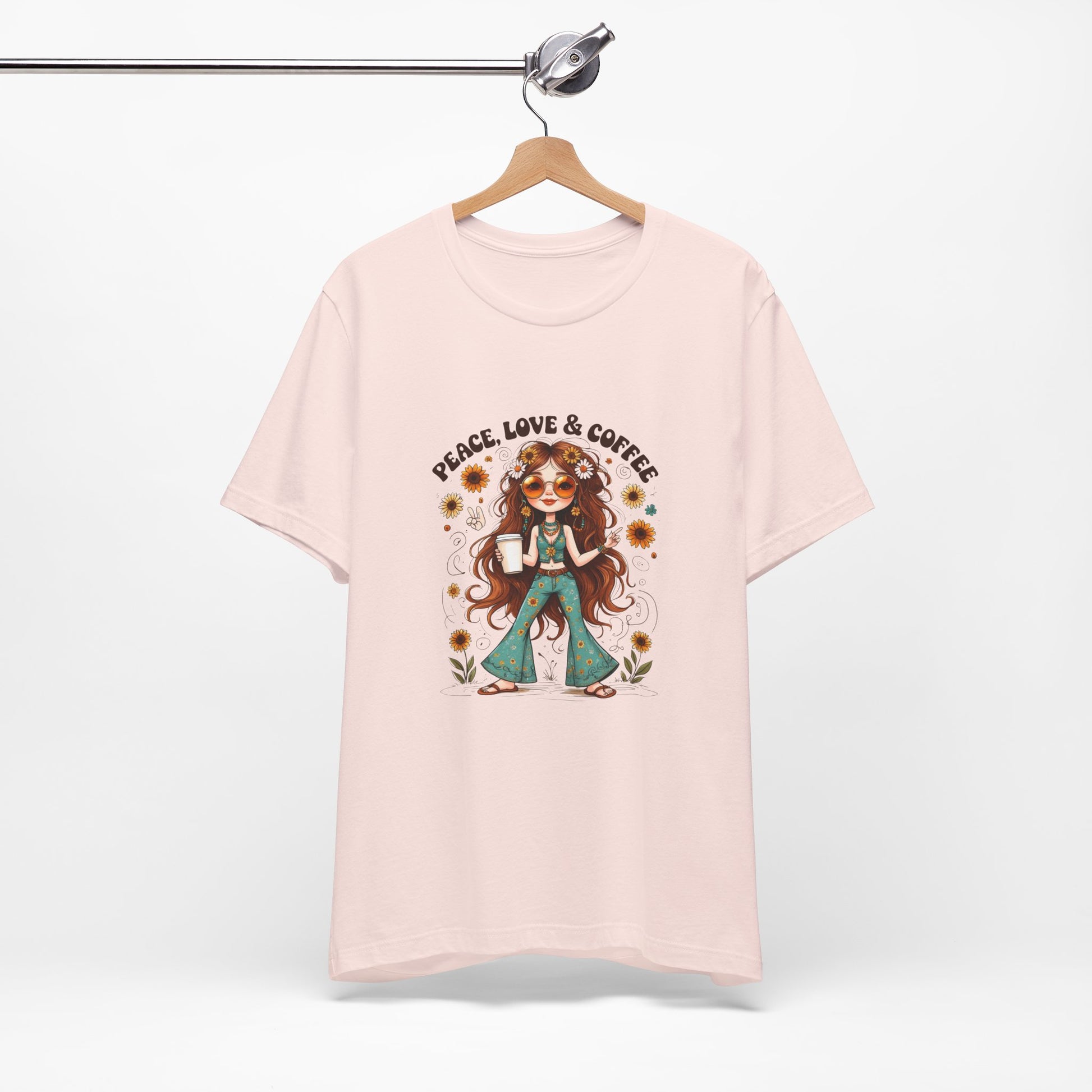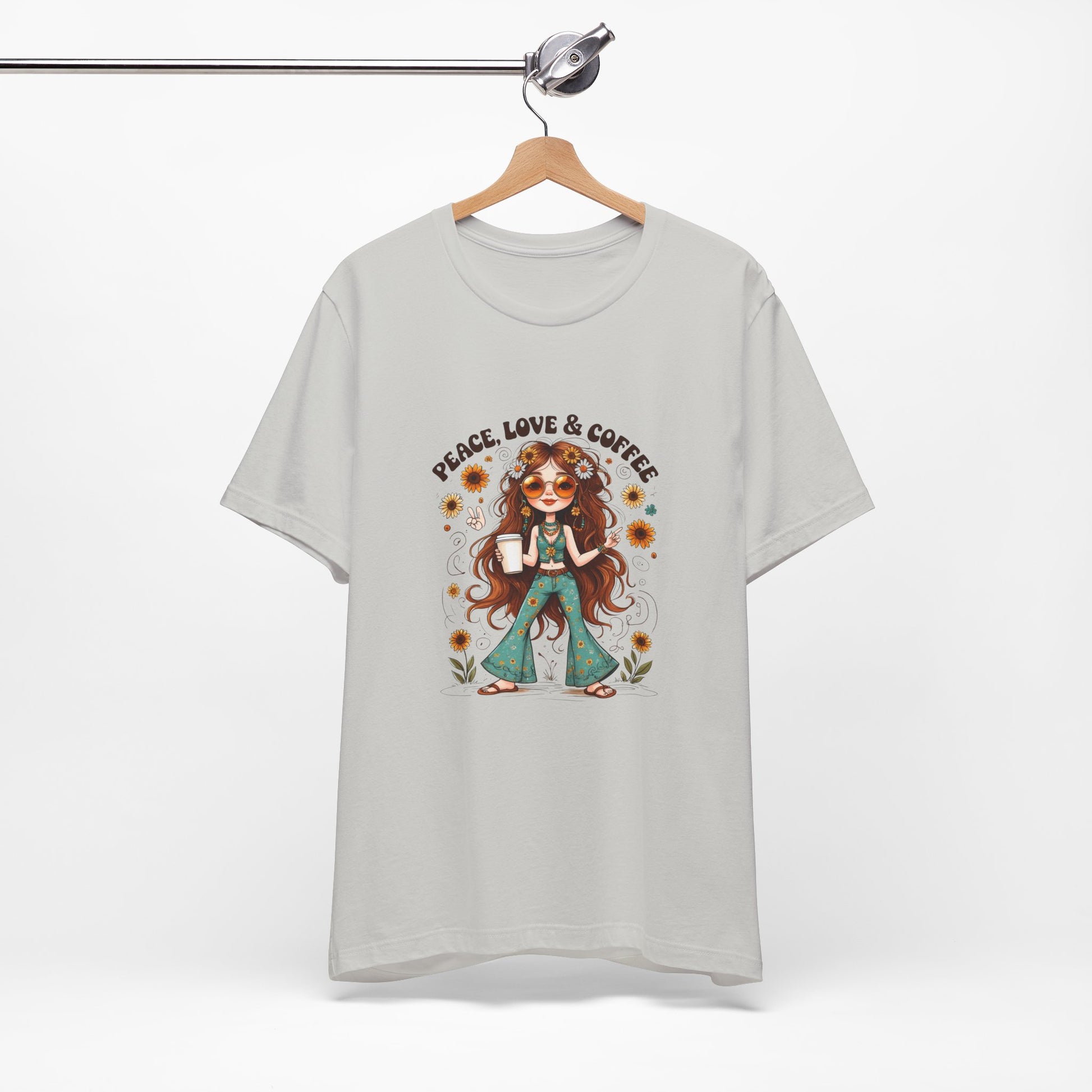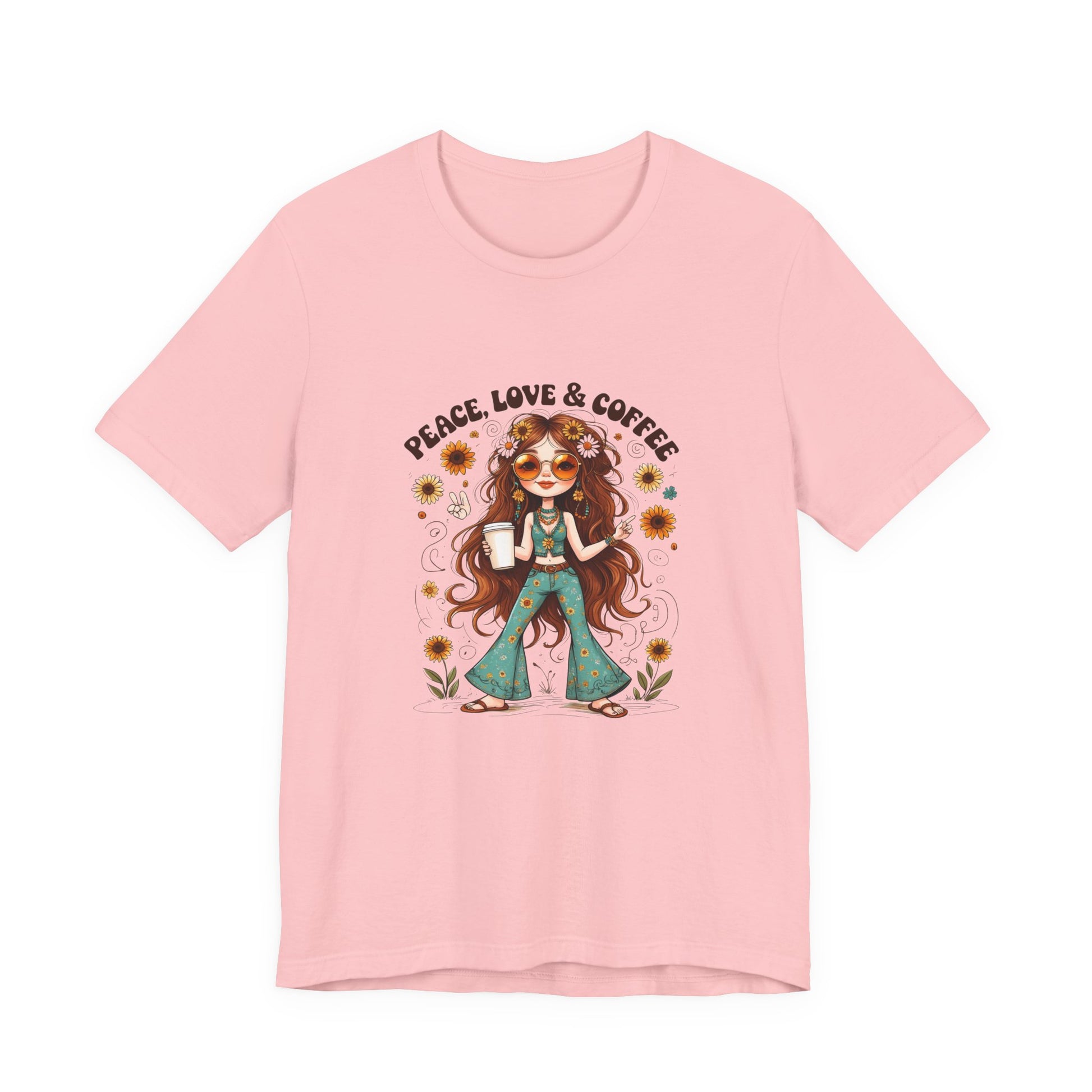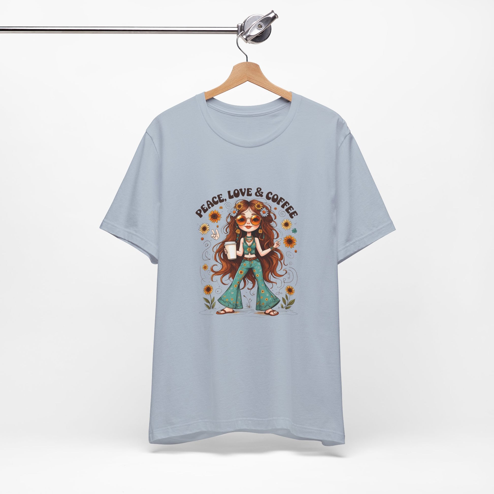 Boho Peace Love Coffee Tee, Relaxed Unisex Tee, Gift for Coffee Lovers, Casual Summer Shirt, Hippie Style Top, Festival Wear