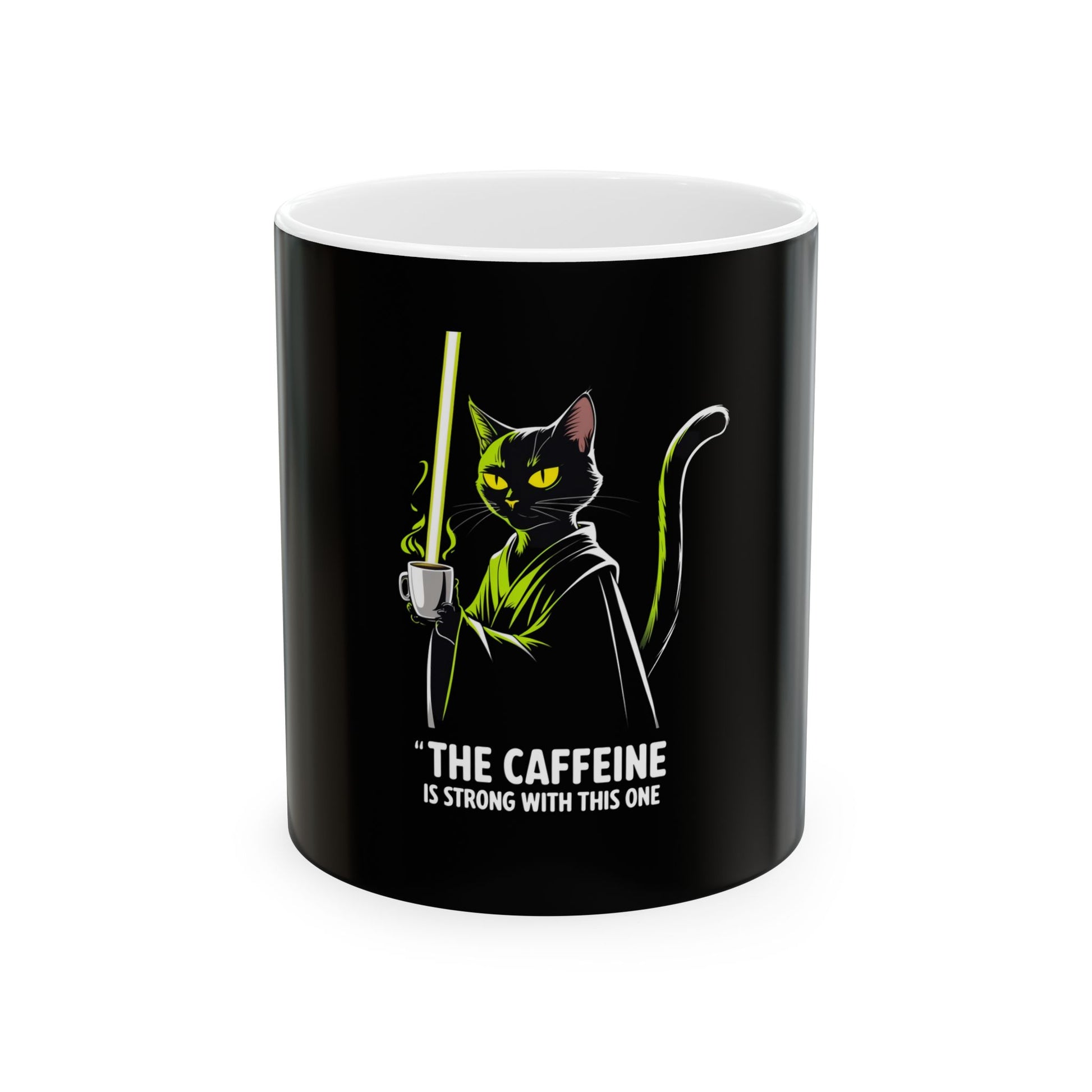 Cat Lover's Ceramic Mug - Funny Caffeine Quote, Gifts for Cat Owners, Black Cat Coffee Cup, Star Wars Inspired, Unique Cat Merchandise