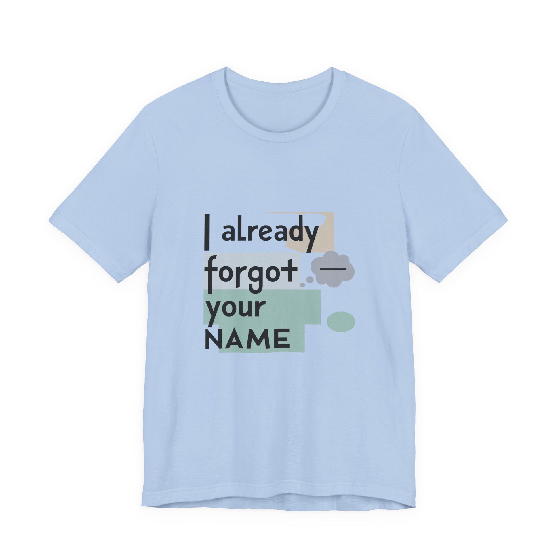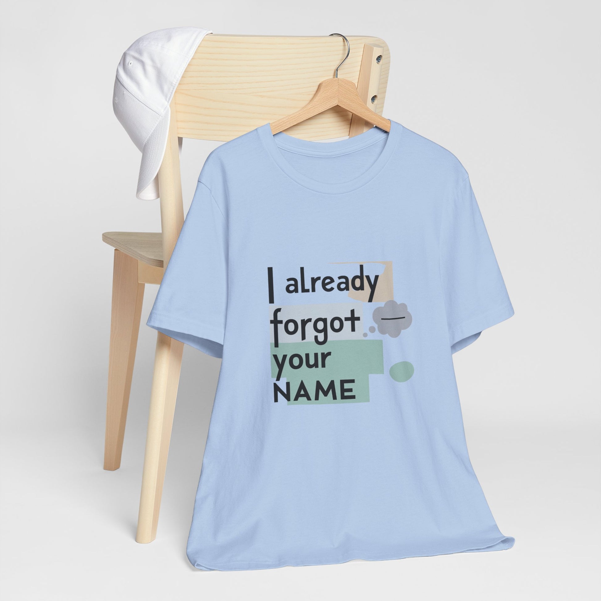 Funny Personalized Tee - "I Already Forgot Your NAME" - Great for Gifts, Anniversaries, Birthdays, Casual Wear, and Summer Outings
