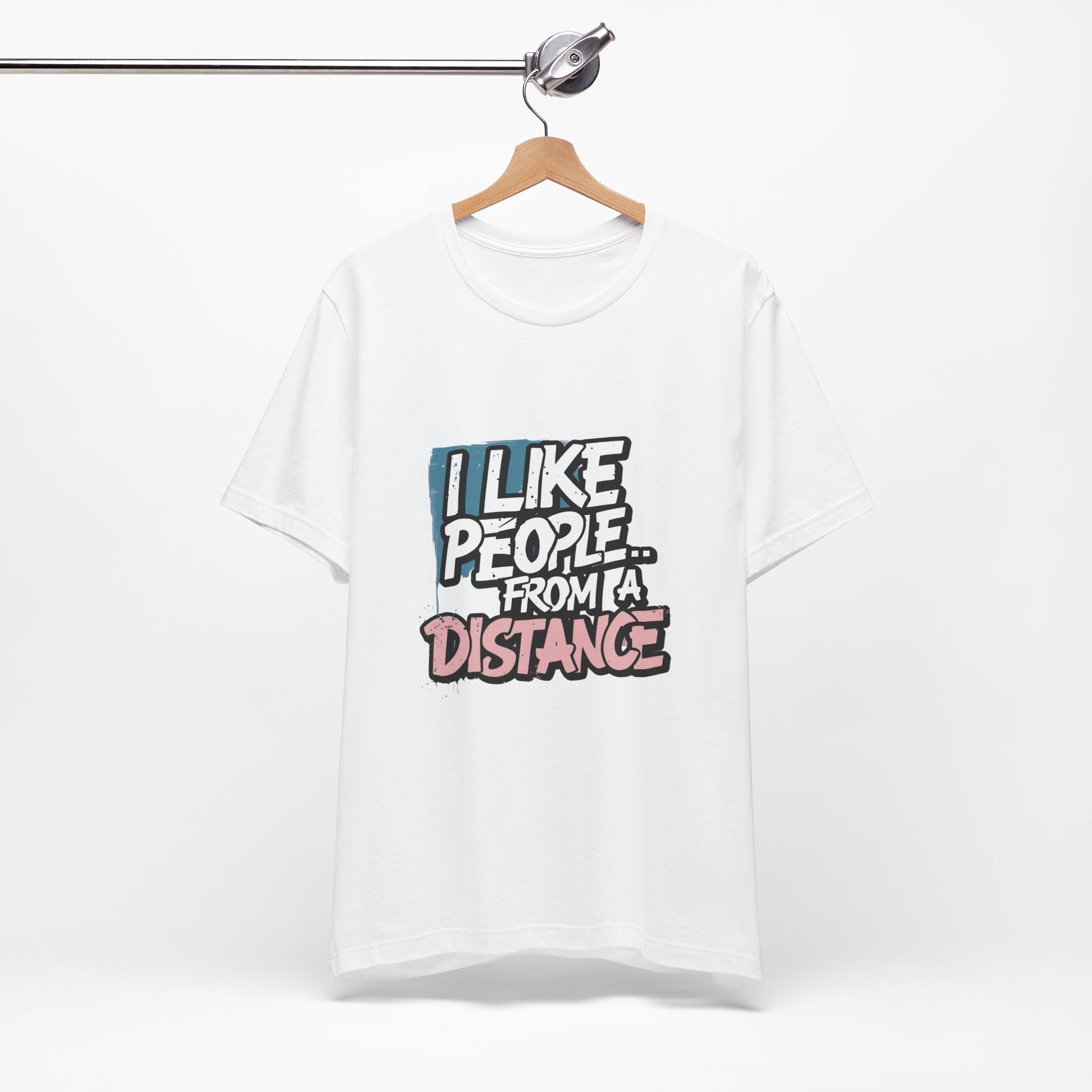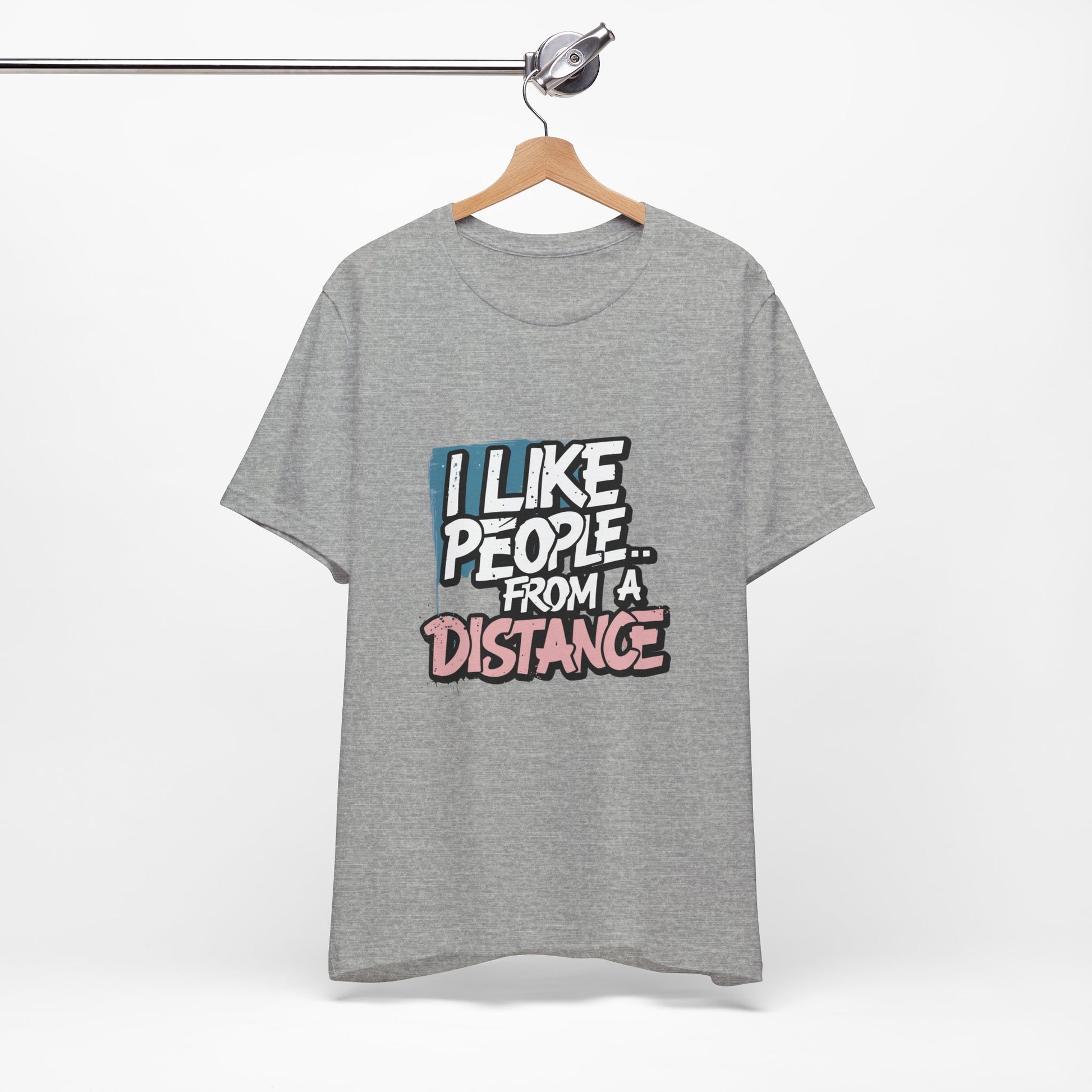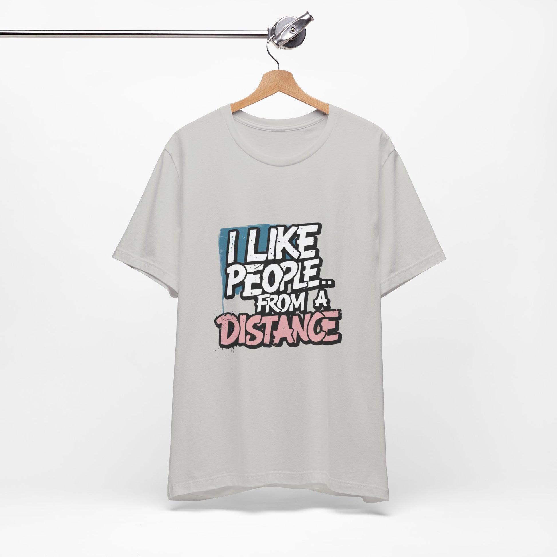 Introducing our Unisex Jersey Short Sleeve Tee, a perfect blend of comfort and style. Made from 100% Airlume combed and ring-spun cotton, this lightweight tee feels soft against the skin and is perfect for layering. The playful message "I Like People... From a Distance" adds a touch of humor, making it a great conversational piece for casual outings. Ideal for individuals who appreciate wit and want to express their introverted side, this tee fits well into a relaxed weekend wardrobe or casual gatherings. it's also a fantastic gift for birthdays, holidays, or just because! Embrace the vibe of comfort and self-expression with this charming addition to your closet, suitable for every season!