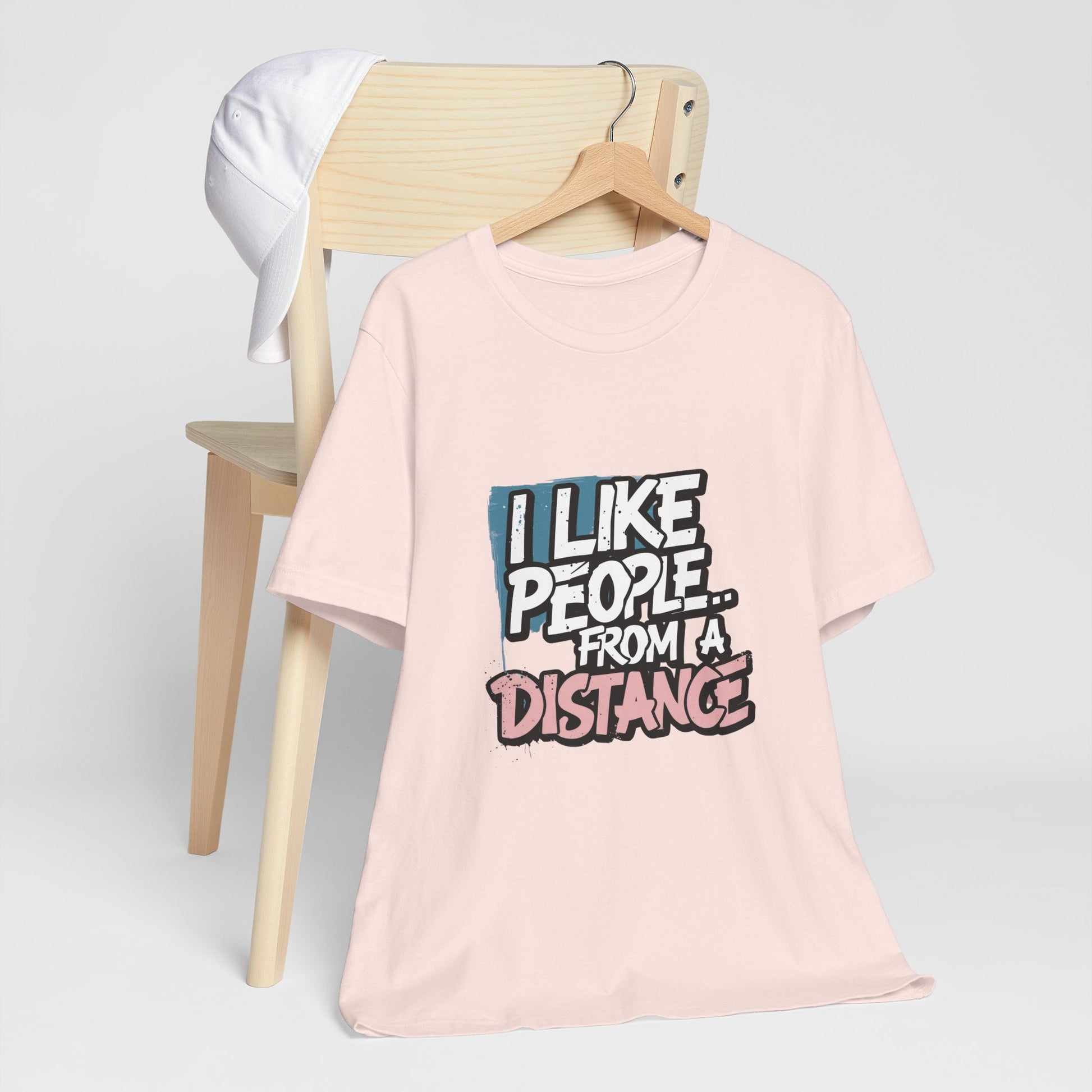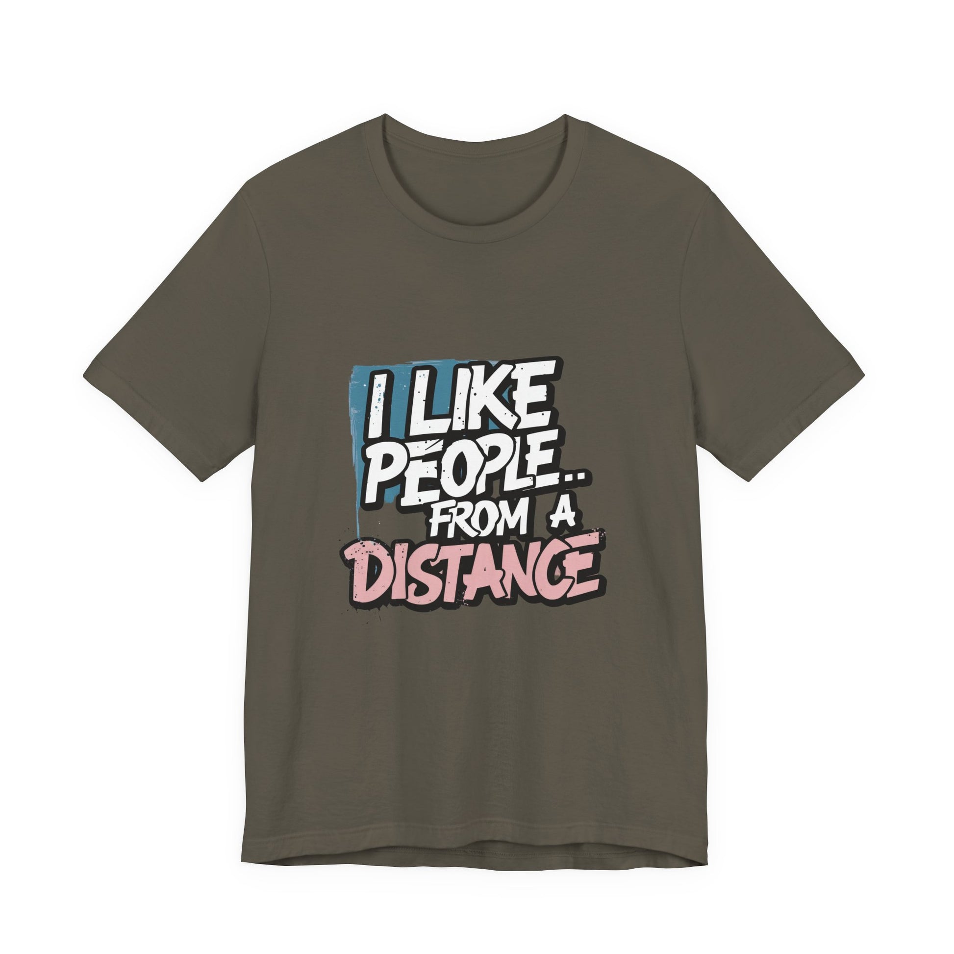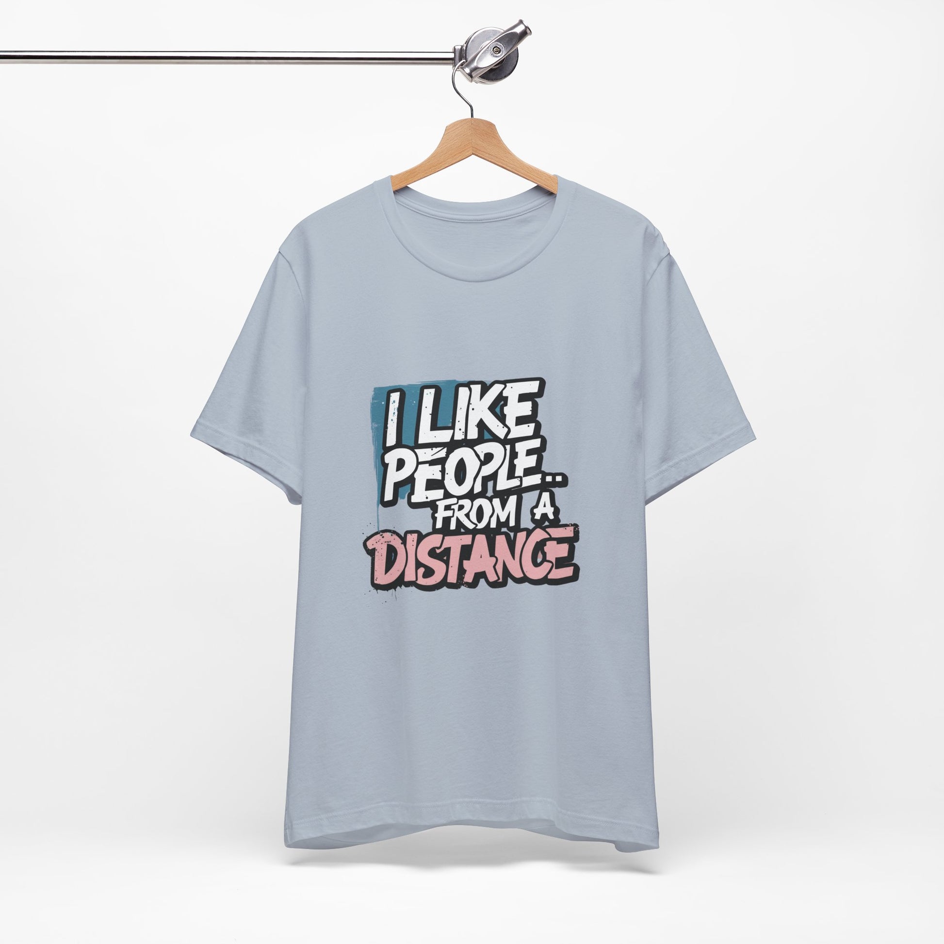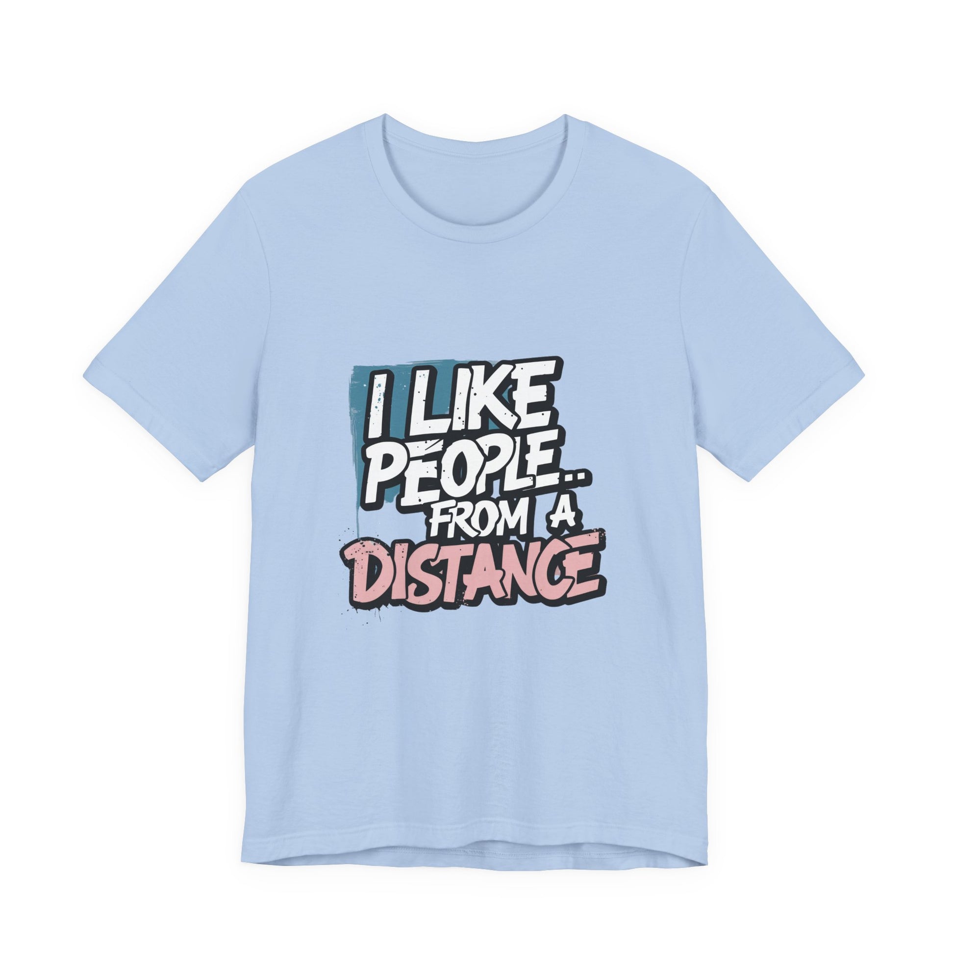 Introducing our Unisex Jersey Short Sleeve Tee, a perfect blend of comfort and style. Made from 100% Airlume combed and ring-spun cotton, this lightweight tee feels soft against the skin and is perfect for layering. The playful message "I Like People... From a Distance" adds a touch of humor, making it a great conversational piece for casual outings. Ideal for individuals who appreciate wit and want to express their introverted side, this tee fits well into a relaxed weekend wardrobe or casual gatherings. it's also a fantastic gift for birthdays, holidays, or just because! Embrace the vibe of comfort and self-expression with this charming addition to your closet, suitable for every season!