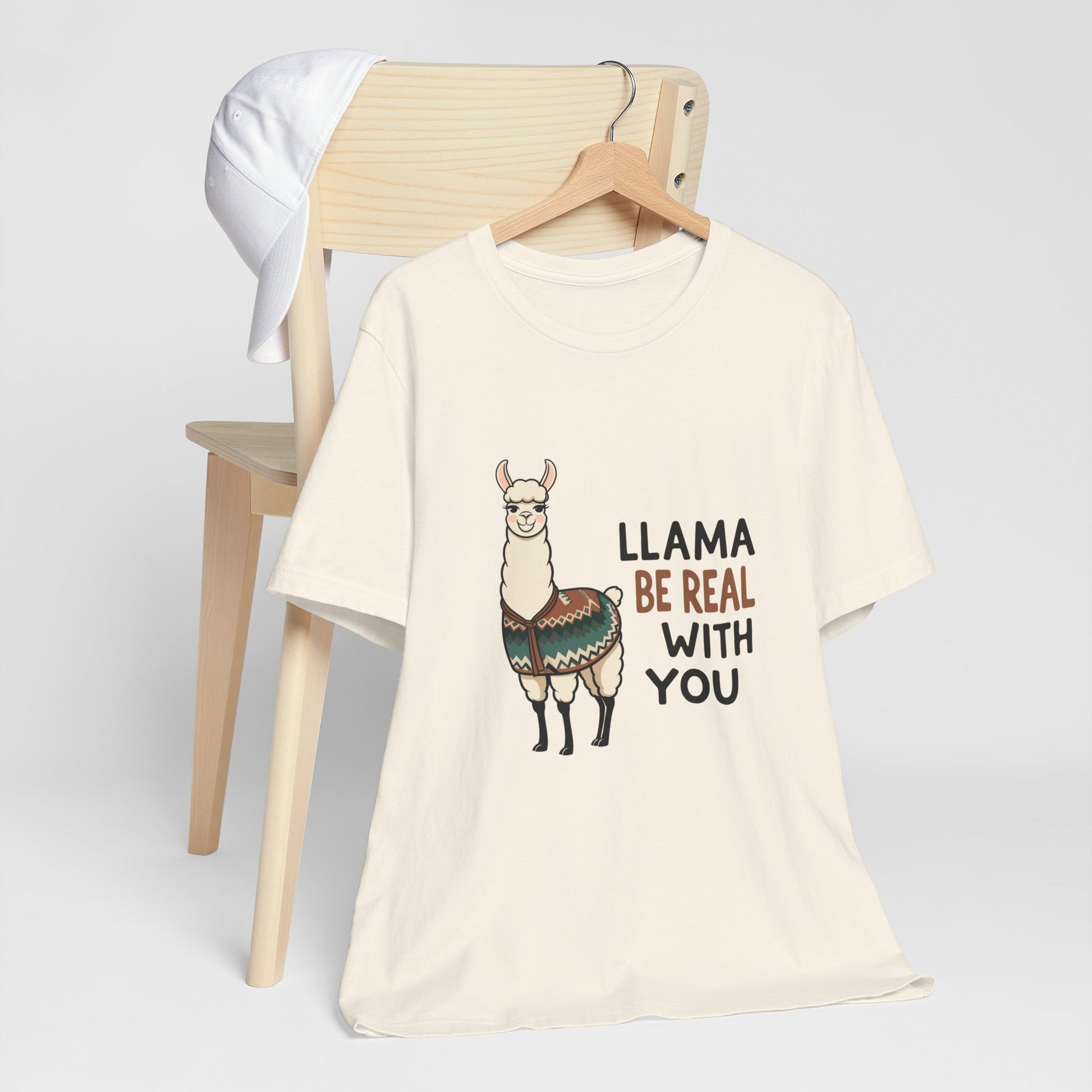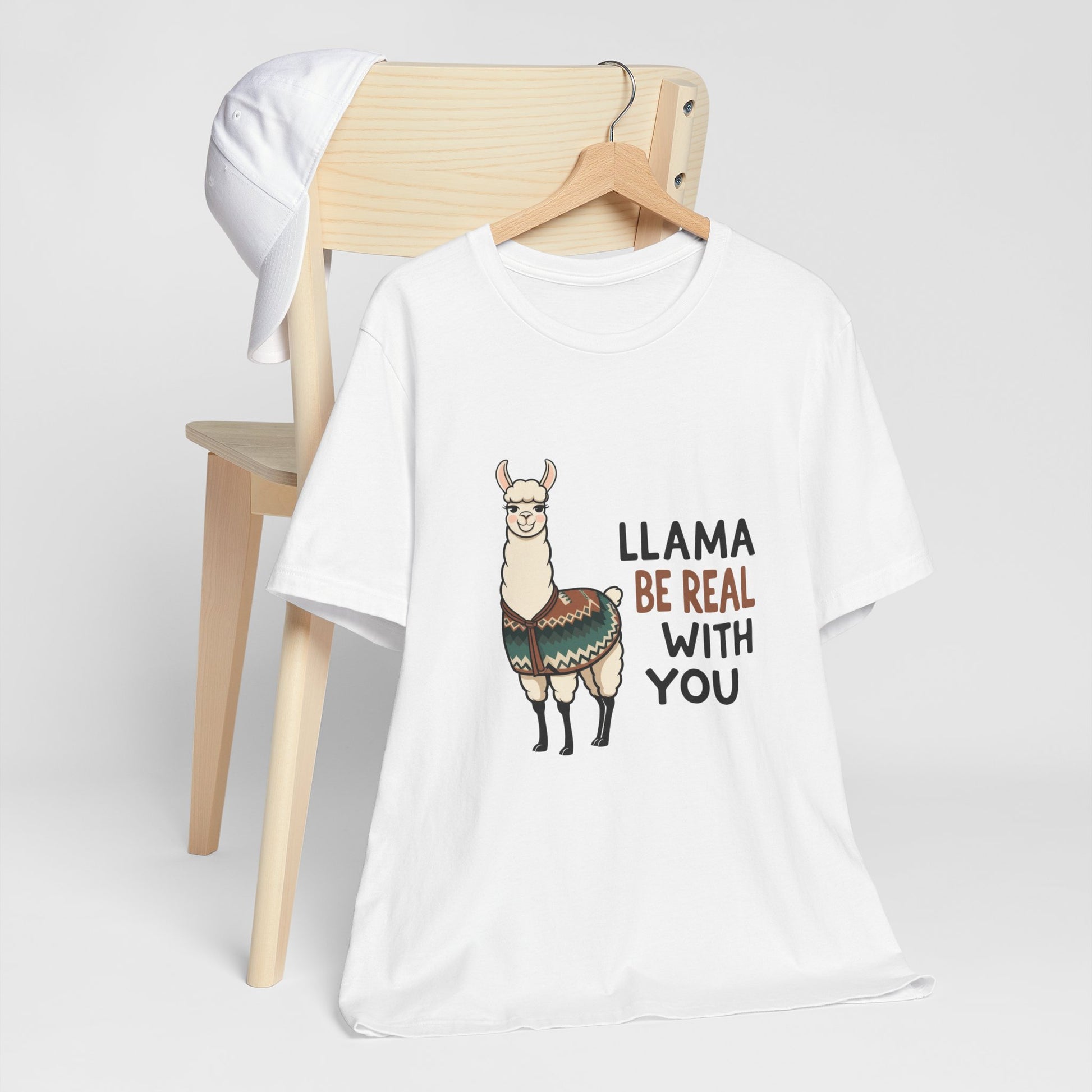 Llama Graphic Tee - Be Real With You - Cute Animal T-Shirt, Funny Shirt for Animal Lovers, Ideal Gift for Friends, Casual Wear